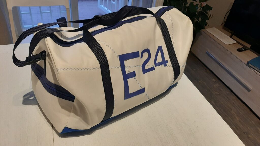 LE BORSE SPORTIVE MEDIE cm. 50x25x30 pratiche, robuste e leggere, con tasca esterna, fodera interna, manici in fettuccia, cinghia regolabile e chiusura con zip. Sono personalizzabili con i simboli delle classi veliche, numeri velici o nomi di imbarcazioni.