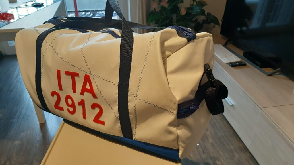 LE BORSE SPORTIVE GRANDI cm. 58x25x30 particolarmente indicate per chi pratica vela ed ha necessita’ di utilizzare mute o cerate. Sono personalizzabili con simboli di classi veliche, numeri velici o nomi di imbarcazioni. Come le precedenti sono foderate e si ripongono in piccoli spazi. Si chiudono con la zip.