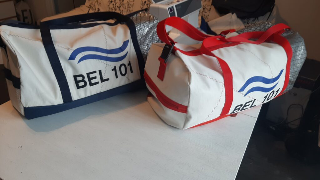 Tutte le borse possono essere personalizzate con simboli velici e abbinamenti di colore a scelta. Sono confezionate in modo artigianale utilizzando le vele dismesse lavate e disinfettate. Tutte le decorazioni sono cucite (non incollate o stampate).